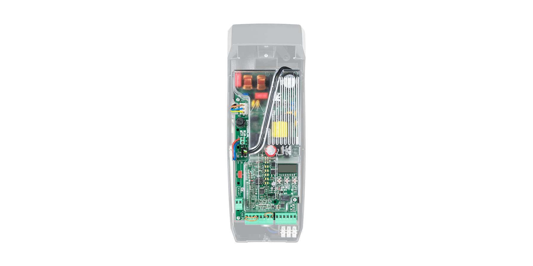 Integrated LCD Display | Integrated 433.92 MHz 512-code radio receiver with ARC coding | Removable terminal boards | Absolute Encoder | Automatic, semi-automatic and Deadman logic | Step by step, stop, photocell, open and close inputs| Input for N.C or 8K2 sensitive edge | Integrated LED courtesy light | Output configurable as gate open indicator, courtesy light, zone light, second radio channel | Output for 230 Vac electric lock/service light | Output for connecting the flashing light | Autoset of operation parameters | Electronic torque adjustment with automatic calculation for each point of the stroke (STC SYSTEM) | Separate electronic adjustments of opening and closing speeds | Anti-crushing safety through amperometric detection and encoder management | Electronic slowdowns in opening and closing | Built-in energy saving system ESA+ | Set up for connection to KNX systems via X.BE card (optional) | Designed for managing, configuring, diagnosing and updating firmware through the BeUP app, using the PRO.UP accessory | Advantouch system to configure parameters and manage radio transmitters | Number of manoeuvres | Programming access password | Maintenance warning | Built-in battery charger