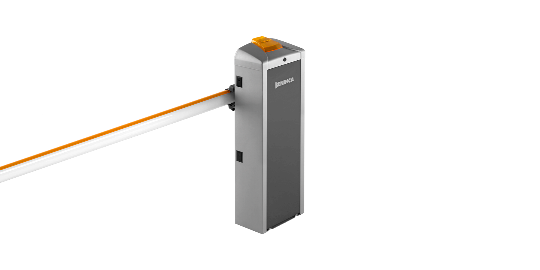 24 Vdc barrier for intensive use with integrated control unit, encoder and battery charger | Switching power supply 100÷250 Vac which reduces energy consumption and ensures a long lifespan of the actuator | Integrated absolute encoder, which ensures greater precision in slowdowns and advanced control of the boom movement so that it never loses the reference position of the boom even if there is a power cut or the automatic device is released | Integrated STC System for precise torque calculation | Easy installation and possibility of quick connection for operation of opposed barriers, thanks to the SIS accessory board | LED.AL8 arm lights with adjustable intensity | Reduced energy use on stand-by | Possibility to install FTC.S photocells using concealed system so that they are perfectly integrated | Integrated flashing lamp (requires EVA.LAMP accessory) | Available in right or left version